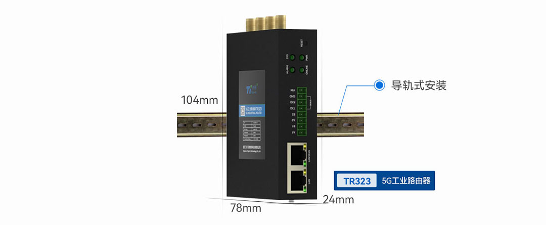 小體積5G工業(yè)路由器TR323,外形104*78*24mm,體積輕巧,導(dǎo)軌式便捷安裝。