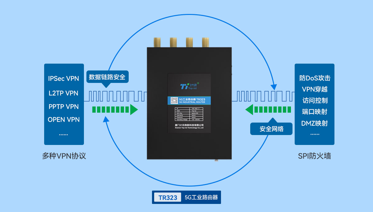 公專網(wǎng)一體5G工業(yè)路由器,智慧電網(wǎng)全鏈路加密監(jiān)控管理應(yīng)用計訊物聯(lián)5G公專網(wǎng)一體工業(yè)路由器通過融合公網(wǎng)和專網(wǎng)的優(yōu)勢有效解決了現(xiàn)代電網(wǎng)對于高效、靈活和安全通信的需求。5G工業(yè)路由器TR323系列,具備小巧、易安裝和強(qiáng)兼容性