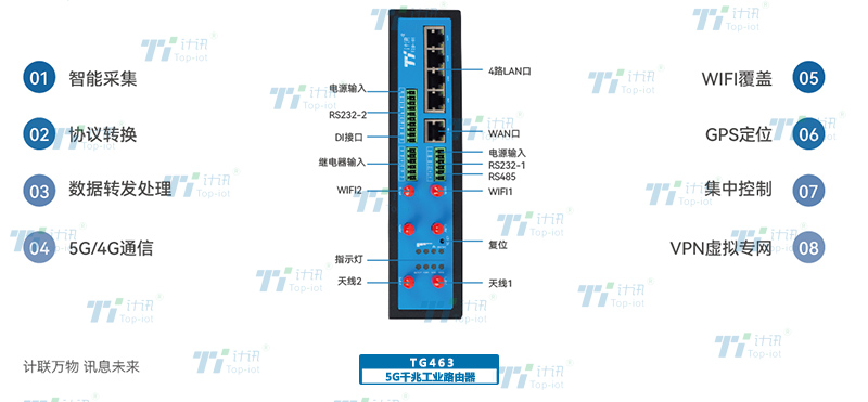 5G千兆工業(yè)路由器TG463TG463系列5G千兆工業(yè)路由器,支持5G網(wǎng)絡(luò),具備5路千兆網(wǎng)口,4路POE口。接口豐富,同時接入更多設(shè)備及傳感器。支持多種VPN協(xié)議(OpenVPN、IP... -