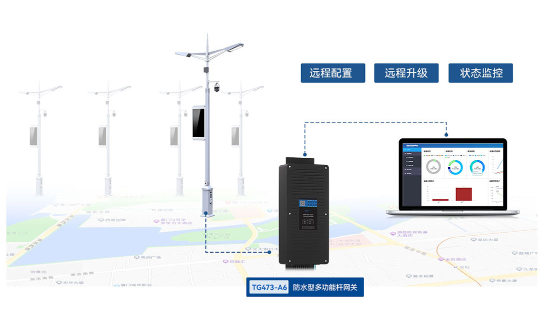 5G智慧燈桿網(wǎng)關(guān)TG473-A6,工業(yè)級(jí)設(shè)計(jì),整機(jī)防護(hù)等級(jí)IP65,引出式子母防水接口防護(hù)等級(jí)IP68,防止噴射水、大浪水、飛濺水入侵,防水性能更佳,無(wú)懼室外惡劣環(huán)境應(yīng)用。TG473-A6下5G智慧路燈桿綜合桿具備燈控照明、視頻監(jiān)控、環(huán)境氣象監(jiān)測(cè)、地面積水、一鍵報(bào)警、led、IP音柱等功能,配合云管理平臺(tái)實(shí)現(xiàn)智慧桿遠(yuǎn)程智能化管控。