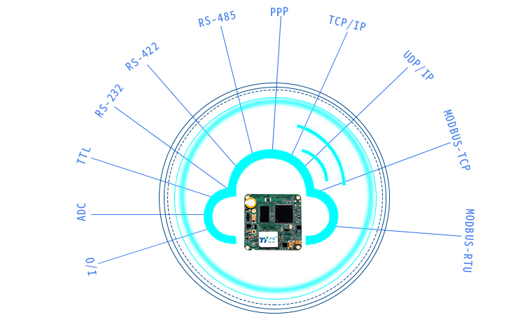 支持I/O、ADC、TTL/RS-232/RS-485多種接口選擇(可定制TTL電平串口),兼容所有串口下位機(jī);支持串口AT協(xié)議,可在運(yùn)行過程中切換到AT狀態(tài),進(jìn)行參數(shù)配置、重啟控制式;兩路模擬量、三路開關(guān)量設(shè)計(jì),可定制脈沖輸出、脈沖計(jì)數(shù)和模擬量輸入功能;內(nèi)嵌PPP、TCP/IP、UDP/IP、MODBUS-TCP、 MODBUS-RTU等多種協(xié)議,兼容廠家私有協(xié)議。