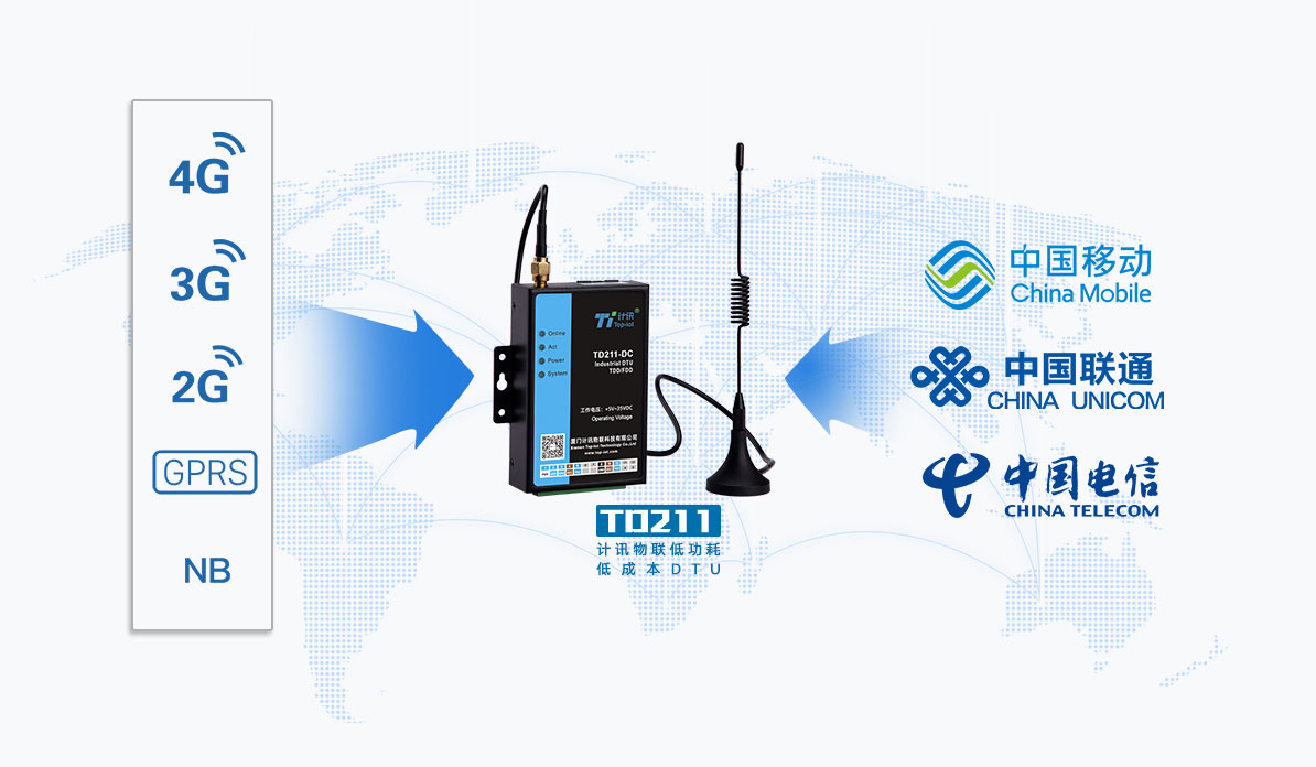 國產(chǎn)化DTU | TD210-C1計訊物聯(lián)國產(chǎn)化DTU TD210-C1,采用處理器國產(chǎn)化方案,主頻性能翻倍,功耗減半, 全網(wǎng)通5G 4G,4G CAT 1,支持串口與IP數(shù)據(jù)、IO與IP數(shù)據(jù)的雙向轉(zhuǎn)換,RS232接口、RS485接口、可選DI、ADC、PI接口,自愈 -