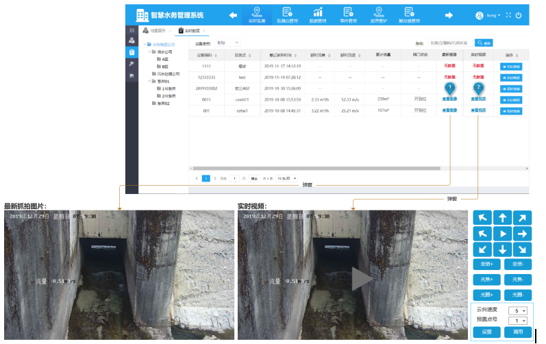 同時(shí)可調(diào)閱對(duì)應(yīng)監(jiān)測(cè)點(diǎn)的最新抓拍圖片和實(shí)時(shí)視頻。視頻支持方向、變焦等云臺(tái)控制,以確認(rèn)現(xiàn)場(chǎng)實(shí)時(shí)細(xì)節(jié)情況(如閥門情況)。