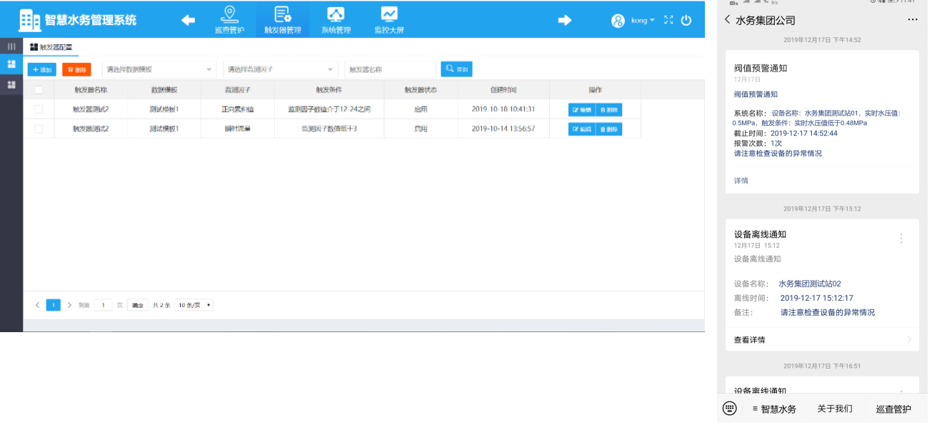 計(jì)訊物聯(lián)智慧水務(wù)系統(tǒng)可對(duì)管道壓力數(shù)據(jù)的實(shí)時(shí)監(jiān)測(cè)分析,與流量數(shù)據(jù)及預(yù)設(shè)壓力限值進(jìn)行實(shí)時(shí)比對(duì),及時(shí)找出壓力超限點(diǎn),排查隱患點(diǎn)。壓力過大狀態(tài)欄顯示爆管預(yù)警,壓力陡降狀態(tài)欄顯示爆管告警。通過對(duì)監(jiān)測(cè)數(shù)據(jù)的實(shí)時(shí)監(jiān)控和分析,滿足預(yù)設(shè)規(guī)則條件即告警;可通過微信、短信、系統(tǒng)音頻等形式通知到相關(guān)責(zé)。