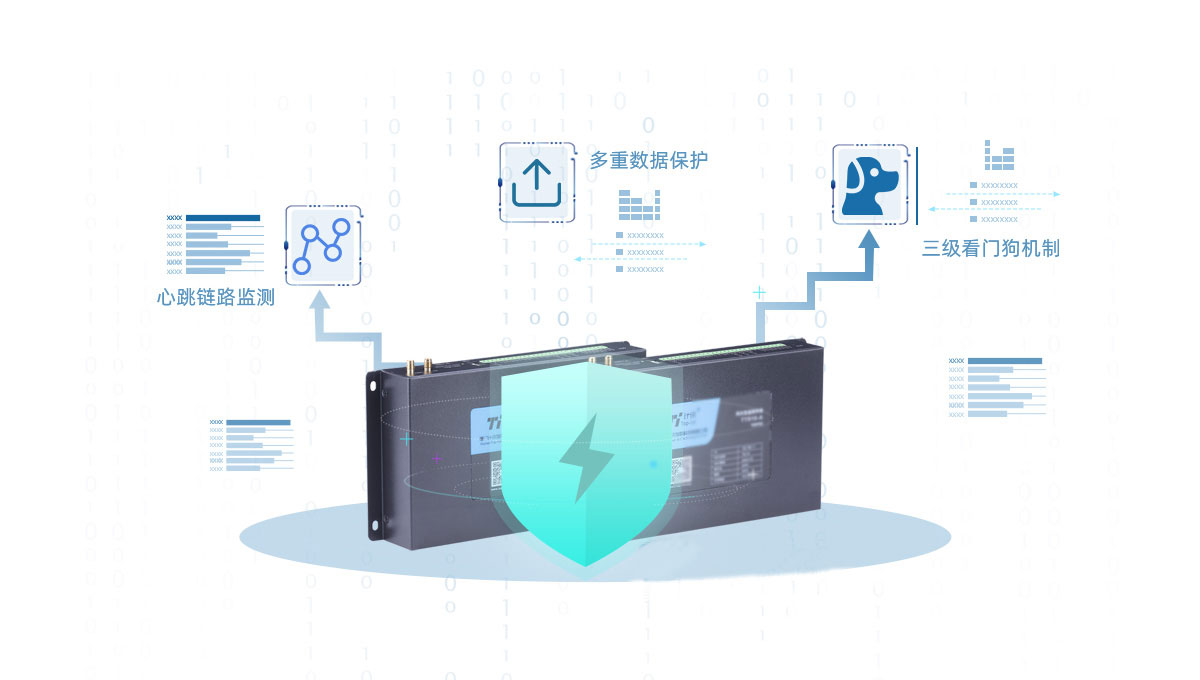 支持?jǐn)嚯?、斷網(wǎng)續(xù)傳和數(shù)據(jù)自動補發(fā),保證數(shù)據(jù)完整性;有線、無線網(wǎng)絡(luò)互為備份,降低通信故障概率;三級看門狗機制、心跳鏈路監(jiān)測保護,保障數(shù)據(jù)穩(wěn)定完整傳輸。