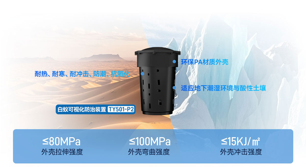 環(huán)保PA材質(zhì)外殼,耐熱、耐寒、耐沖擊、防潮、抗氧化,適應(yīng)地下潮濕環(huán)境與酸性土壤,可確保設(shè)備的長期穩(wěn)定運(yùn)行