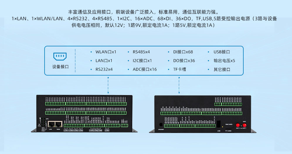 16路ADC(12位AD、支持4-20mA電流信號輸入,可選0-5V電壓信號輸入) |