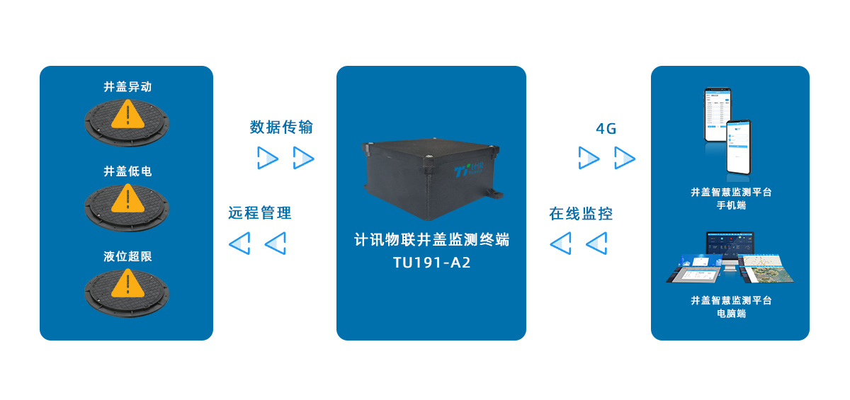 窨井安全監(jiān)測解決方案_井蓋安全監(jiān)測計訊物聯(lián)窨井安全監(jiān)測是基于物聯(lián)網(wǎng)技術(shù)、無線通信技術(shù)、大數(shù)據(jù)、云計算的智能化管理系統(tǒng),通過實時監(jiān)測窨井內(nèi)的水位、井蓋狀態(tài)等關(guān)鍵參數(shù),實現(xiàn)對窨井安全的遠(yuǎn)程自動化全面監(jiān)控。 -