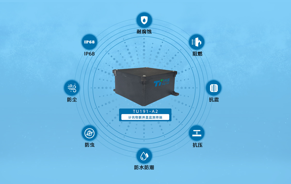 井蓋監(jiān)測終端TU191-A2,4G CAT.1穩(wěn)定通信,低功耗設(shè)計超常待機(jī),IP68高防護(hù)等級適用于雨水潮濕惡劣環(huán)境,支持井蓋移動、傾斜、液位、氣體監(jiān)測,支持告警報警功能,電子標(biāo)簽分散設(shè)備遠(yuǎn)程統(tǒng)一管理,常用于城市供水井蓋、供暖井蓋、污水處理井蓋、消防井蓋等場景。