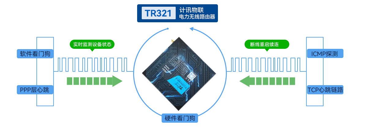 TR321采用軟件看門狗、硬件看門狗、PPP層心跳、ICMP探測、TCP心跳鏈路等多重檢測機制,