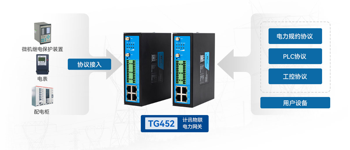 計(jì)訊物聯(lián)電力網(wǎng)關(guān)TG452支持電力IEC101、IEC104、IEC61850、DL/T645等協(xié)議標(biāo)準(zhǔn),下行支持各電力終端