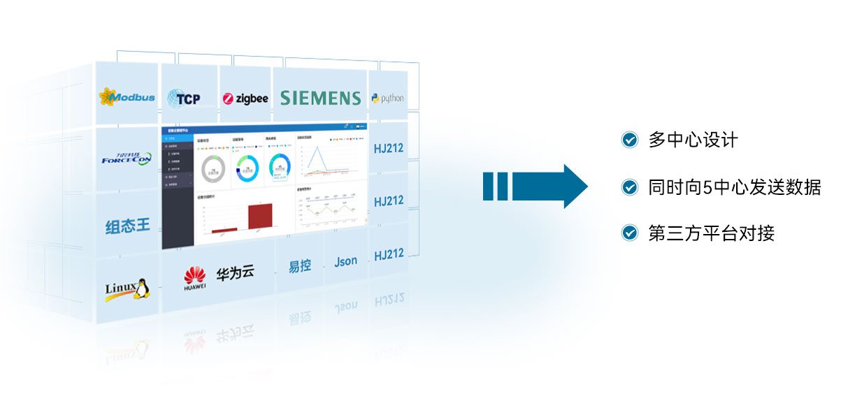 支持包括阿里云/華為云等主流云平臺(tái)接入;支持modbus rtu、modbus tcp、mqtt、http、json等協(xié)議,強(qiáng)協(xié)議轉(zhuǎn)換能力實(shí)現(xiàn)系統(tǒng)和設(shè)備間數(shù)據(jù)交換和互通。