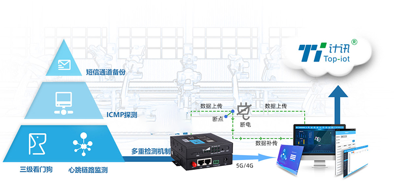 TR311采用軟件、硬件和CPU三級看門狗專利技術(shù),智能軟件喚醒、硬件可自動重啟;支持心跳鏈路ICMP探測,掉線重連,確保設(shè)備永不宕機。
