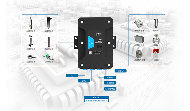 計訊物聯(lián)高精度GNSS接收機(jī)TN531,多星多頻北斗 GPS GAL GLONASS,內(nèi)置GNSS 4G天線,收發(fā)一體化,應(yīng)用于位移監(jiān)測、橋梁監(jiān)測、邊坡監(jiān)測、大壩安全監(jiān)測、危房監(jiān)測、基坑監(jiān)測、尾礦庫監(jiān)測等自動化場景