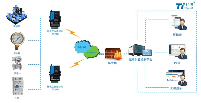通過因特網(wǎng)、物聯(lián)網(wǎng)實現(xiàn)城市供暖集中控制系統(tǒng)的遠(yuǎn)程智能監(jiān)控與管理;