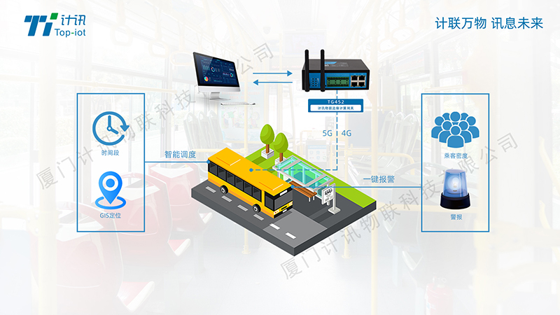 計訊物聯(lián)以5G專網(wǎng)作為通信載體,利用其高速率、低時延、大帶寬、廣連接的特性重點打造了AI視頻網(wǎng)關(guān)TG452,實時追蹤5G智能公交車的運營情況,為市民提供公交車班次、到站等信息服務(wù),保障公交精細(xì)化運營,有效提升公交在信息系統(tǒng)架構(gòu)、安全規(guī)范運營、設(shè)備預(yù)測維修等方面的能力,為5G公交車行業(yè)參與智慧城市建設(shè)提供支撐。