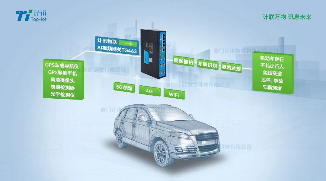 計(jì)訊物聯(lián)AI視頻網(wǎng)關(guān)TG463作為智慧交通的重要組成部分,兼容行業(yè)通信協(xié)議及交通行業(yè)規(guī)約,通過5G專網(wǎng)、4G、WiFi等無線通信與GPS車載導(dǎo)航儀、GPS導(dǎo)航手機(jī)、車輛通行電子信息卡、高清攝像頭、線圈檢測器、光學(xué)檢測儀、紅外雷達(dá)檢測器等設(shè)備形成互聯(lián)互通狀態(tài),基于各類交通場景中的人、車、物、事件、軌跡等檢測算法進(jìn)行人臉、車輛等事物特征進(jìn)行捕獲、檢測與識別,同時支持圖像抓拍、視頻深度解析、車牌識別,車流量監(jiān)控、道路監(jiān)控等功能,利用視頻巡檢的方式自動監(jiān)測并預(yù)警機(jī)動車逆行、不禮讓行人、實(shí)線變道、違停、事故、車輛擁堵等異常交通行為。