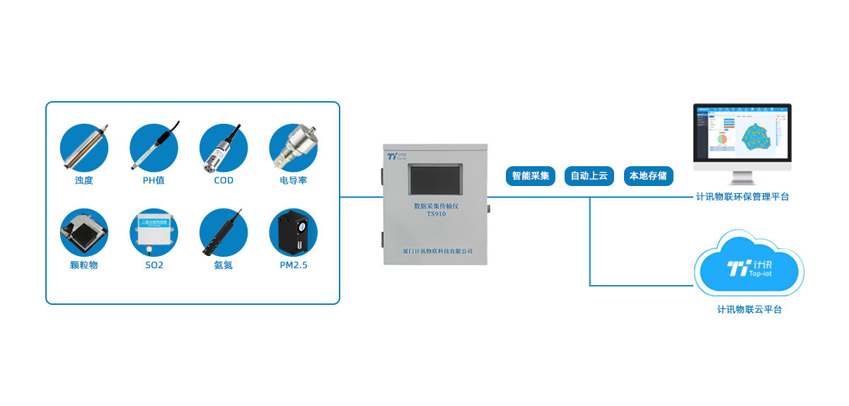 TS910系列環(huán)保監(jiān)測(cè)終端,豐富接口及協(xié)議,下行前端數(shù)據(jù)自動(dòng)采集、主動(dòng)上云,上行對(duì)接環(huán)保監(jiān)管部門(mén)、計(jì)訊智慧環(huán)保平臺(tái)、第三方定制平臺(tái),實(shí)現(xiàn)水、氣、噪聲等環(huán)保監(jiān)測(cè)、污染源工況的遠(yuǎn)程自動(dòng)化全方位智能管理,工業(yè)品質(zhì)性能穩(wěn)定,強(qiáng)兼容易擴(kuò)展。
