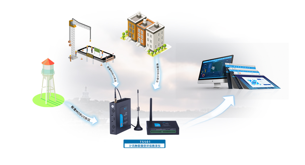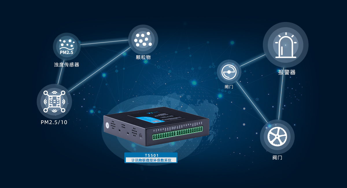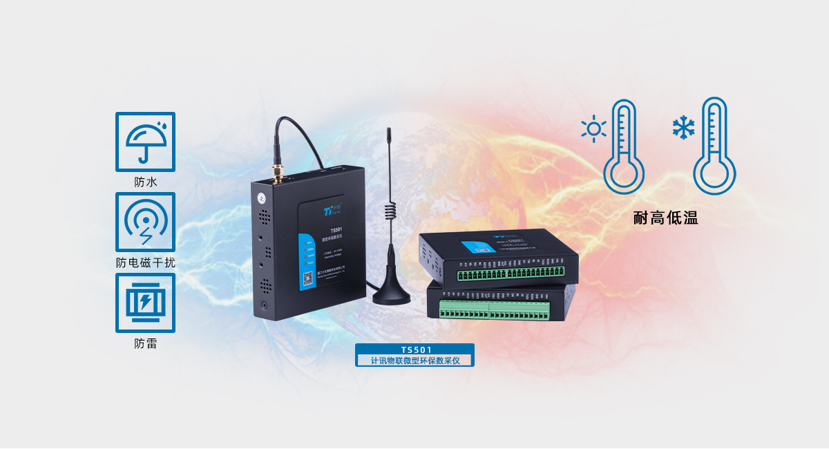 TS501系列采集終端是集數(shù)據(jù)采集與2G/3G/4G數(shù)據(jù)傳輸功能于一體的環(huán)保微型采集儀,采用極簡設計方式,滿足關鍵的環(huán)保數(shù)據(jù)采集需求,包含:濁度傳感器、PH值傳感器、COD、電導率、顆粒物、SO2、氨氮、PM2.5/10、噪聲等可精準采集各種污染治理設備工作狀態(tài),可對閥門、閘門、報警器等設備進行控制。同時兼容各種類型的各類水、氣在線分析儀表和流量計等儀器。TS501系列產品完全符合《污染物在線自動監(jiān)控(監(jiān)測)系統(tǒng)數(shù)據(jù)傳輸標準》(HJ 212-2017)和(HJ 212-2005),多傳輸中心設計,監(jiān)測數(shù)據(jù)可同時發(fā)送至各級環(huán)保局、業(yè)主及運維單位。