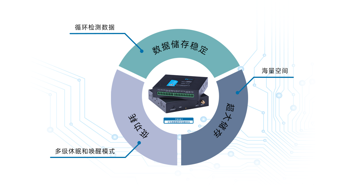 多級休眠和喚醒模式,功耗遠低業(yè)界同類產品;海量空間,可在本機循環(huán)存儲監(jiān)測數(shù)據(jù),掉電不丟失。