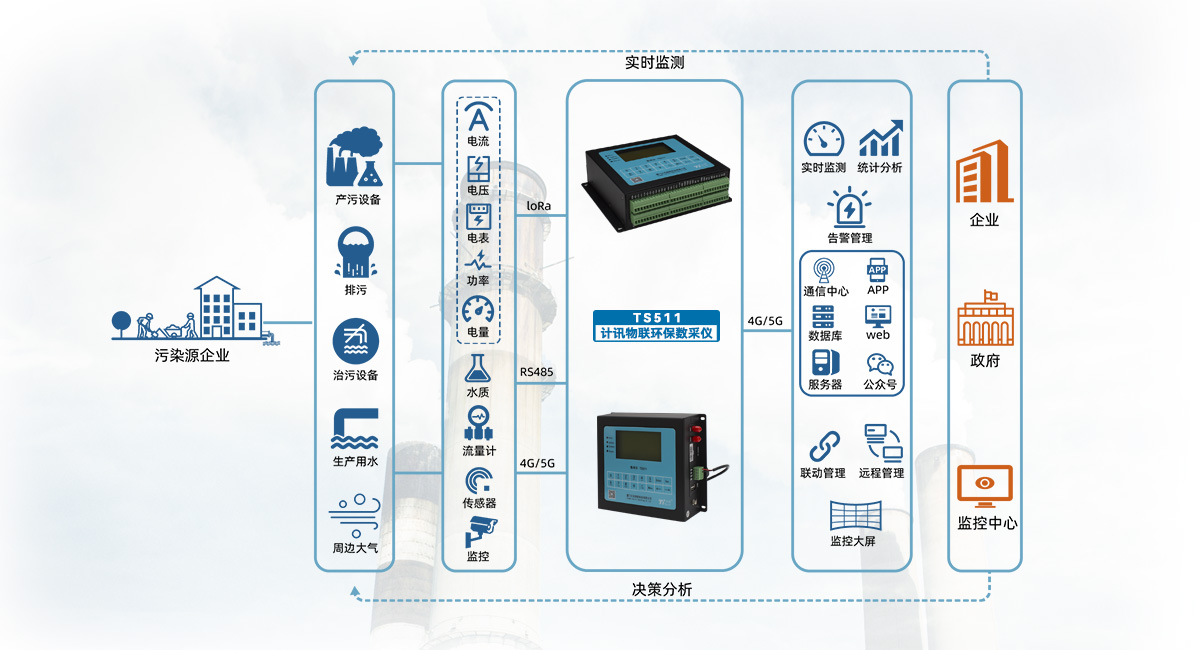 TS511系列采集終端是集數(shù)據(jù)采集與2G/3G/4G/5G數(shù)據(jù)傳輸功能于一體的環(huán)保數(shù)據(jù)采集終端,完全符合《污染物在線自動監(jiān)控(監(jiān)測)系統(tǒng)數(shù)據(jù)傳輸標(biāo)準(zhǔn)》(HJ 212-2017) 和(HJ 212-2005),可外接串口工業(yè)智能控制屏做數(shù)據(jù)顯示和設(shè)置(用戶自配智能串口屏幕),可對閥門、閘門、報(bào)警器等設(shè)備進(jìn)行控制、可精準(zhǔn)采集各種污染治理設(shè)備工作狀態(tài)。支持定制第三方上位機(jī)通信協(xié)議。支持市電和太陽能供電。適用于環(huán)境和污染源在線監(jiān)測設(shè)備監(jiān)測數(shù)據(jù)的采集、存儲和傳輸。