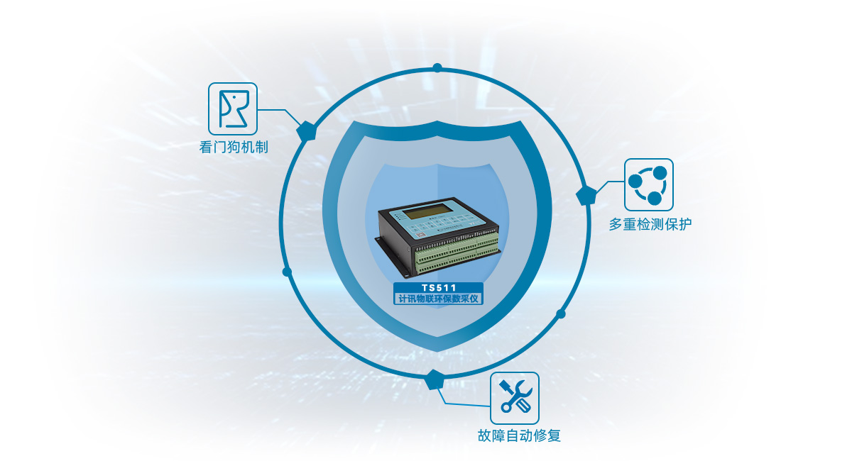 高穩(wěn)定性設(shè)計(jì),多重檢測機(jī)制,運(yùn)行故障自修復(fù),確保設(shè)備永不死機(jī);采用三級看門狗檢測機(jī)制,CPU自帶看門狗設(shè)計(jì)、硬件電路看門狗設(shè)計(jì)、軟件看門狗設(shè)計(jì),智能軟件喚醒和硬件斷電重啟機(jī)制,設(shè)備自動復(fù)位,保證設(shè)備正常運(yùn)行;采用PPP層心跳、ICMP探測、TCP心跳鏈路檢測機(jī)制、網(wǎng)絡(luò)故障自動恢復(fù)、掉線重連確保設(shè)備永久在線;網(wǎng)絡(luò)通道與短信通道可相互切換,當(dāng)TCP/UDP斷開連接時,可啟用短信發(fā)送數(shù)據(jù);掉線重連、數(shù)據(jù)補(bǔ)發(fā),傳輸穩(wěn)定、可靠不丟包。