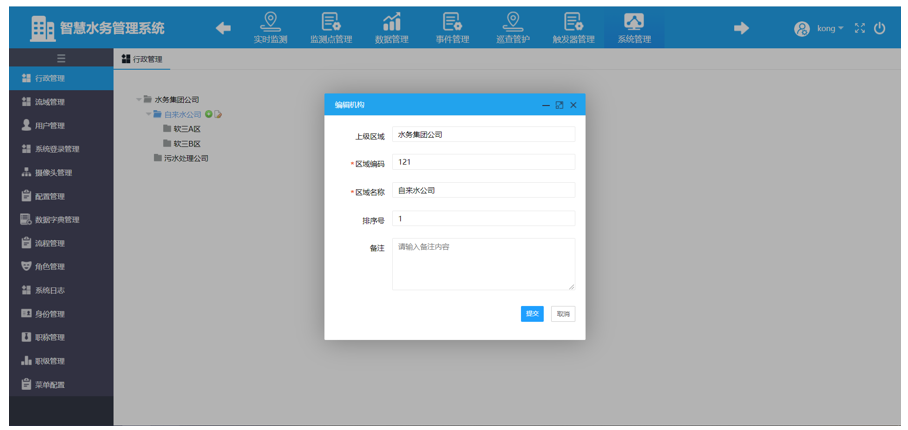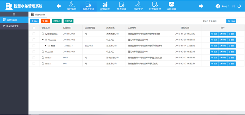 功能全面性:平臺(tái)系統(tǒng)堅(jiān)持實(shí)用性原則,以滿足復(fù)雜多樣的應(yīng)用場(chǎng)景為目標(biāo),設(shè)計(jì)全面的功能模塊。包含實(shí)時(shí)監(jiān)測(cè)、水權(quán)管理、收費(fèi)管理、統(tǒng)計(jì)分析、巡查管護(hù)、事件管理、一張圖等。