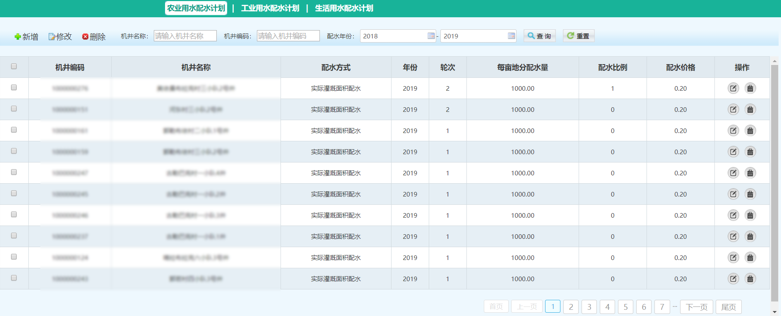 實(shí)現(xiàn)根據(jù)機(jī)井分配水量,配水方式可為按實(shí)際灌溉面積、按額定灌溉面積或按人口,不同輪次可定義差異價(jià)格。