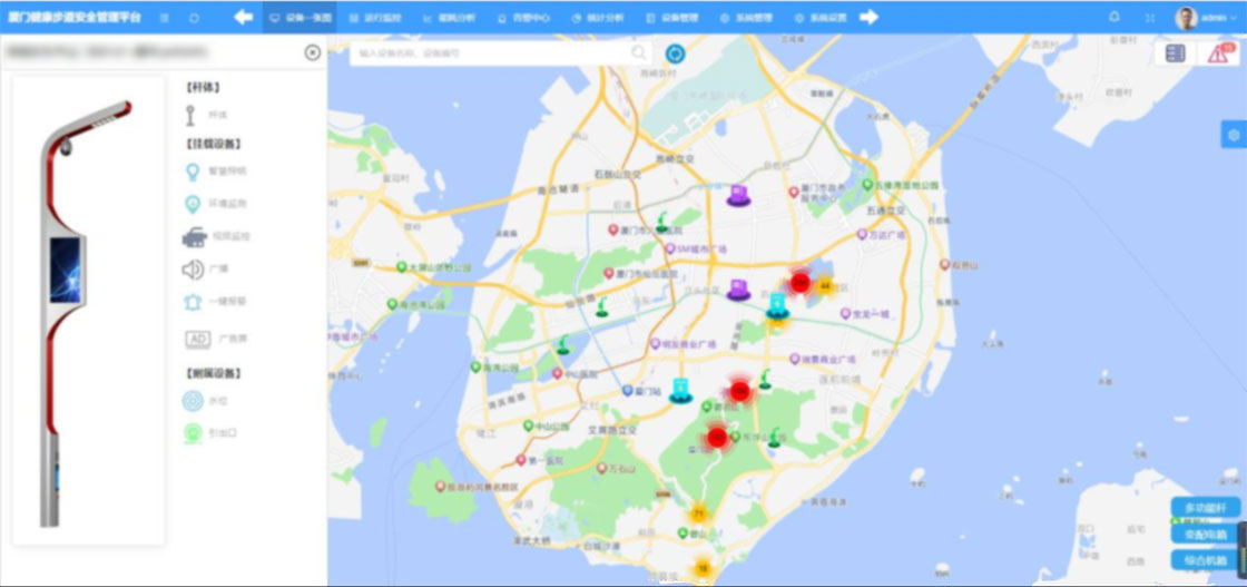 ★GIS一張圖,設備總覽,集中展示步道設備的分布情況。